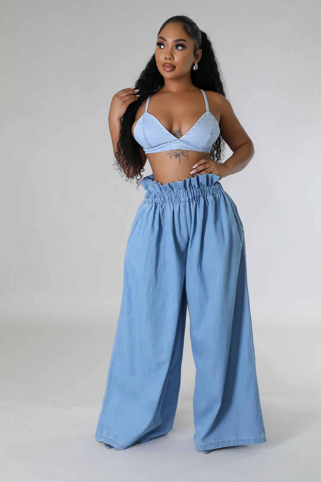 These Brunch Bae Pants feature a non-stretch denim fabric and a high waist design for a comfortable and oversized fit. The elastic waistband ensures a secure fit while the wide-leg silhouette adds an on-trend touch. With a 29-inch inseam, these pants are perfect for any occasion.