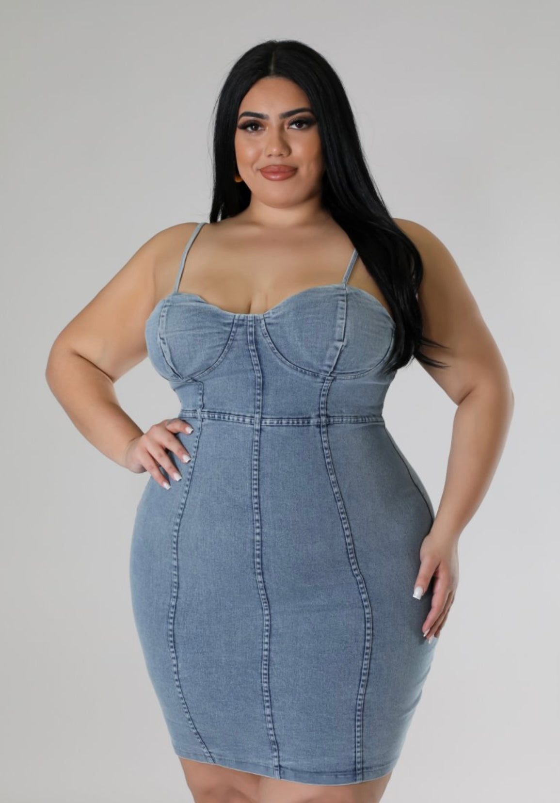 - This denim fitted dress features a semi-stretch fabric, sweetheart neckline, spaghetti straps, and a 95% polyester, 5% spandex blend. It is recommended to hand wash cold. The model wearing a 2X size.